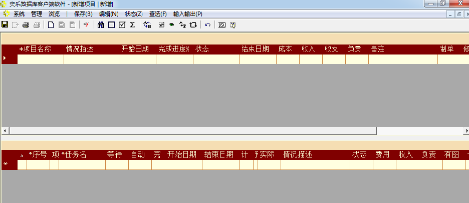 在"新建项目"窗口中可以新建一个项目,上层表中输入项目基本信息,每行代表一个项目,下层表中输入完成项目需要执行的步骤或者说任务,每行代表一个任务。