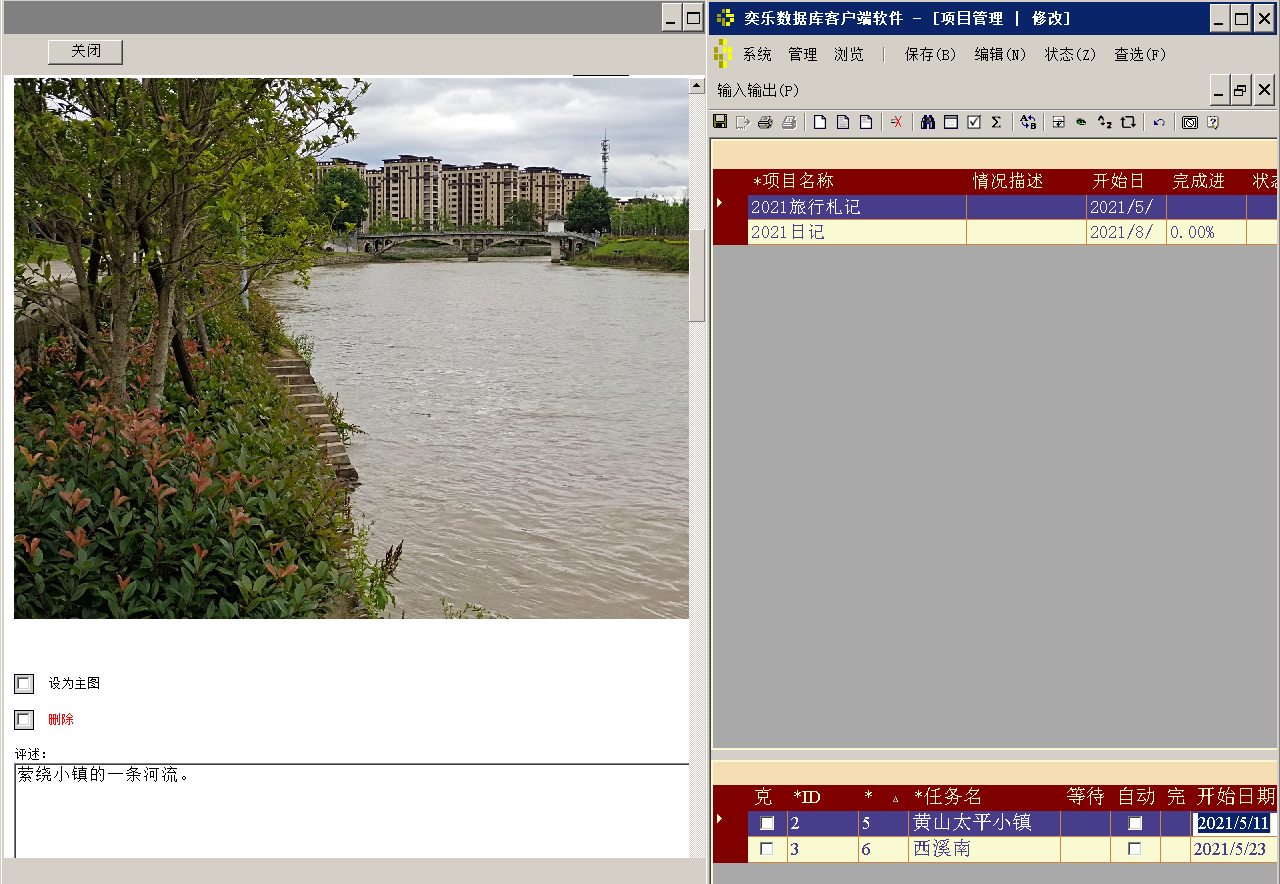 例如在“项目管理”窗口建一个“旅行札记”的项目,用来记录旅行相关的资料,而具体的每次旅行经历可以作为任务或者说子项目,添加在项目下面。 添加好后,就可以按CTRl+B, 把这次旅行的照片与视频,附加在任务下面。