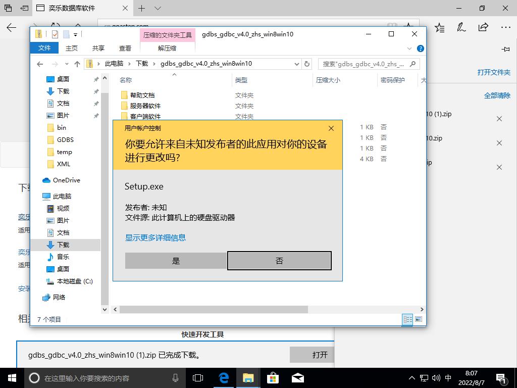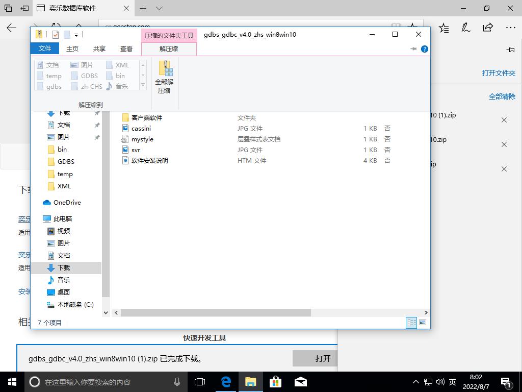 ![]() 在Winows 10上会显示如上的视图,菜单上的解压缩提示这是一个压缩文件包,但软件不能在压缩包里安装,因此需要选择菜单解压缩->全部解压缩,解压缩成普通的文件夹。 |