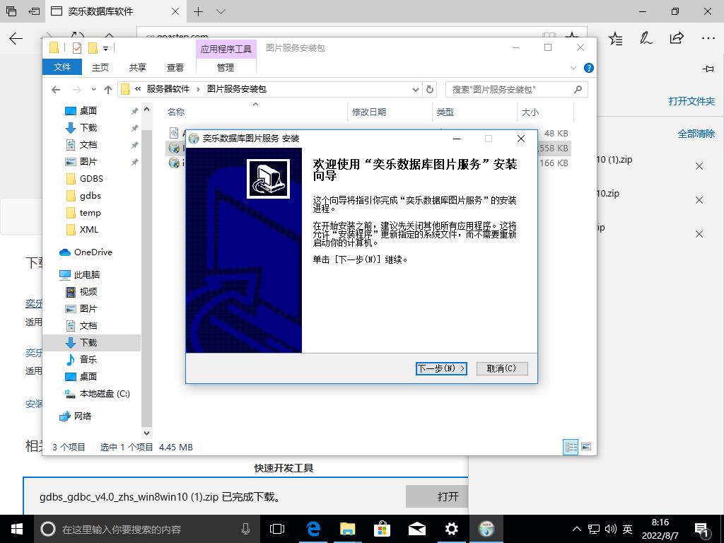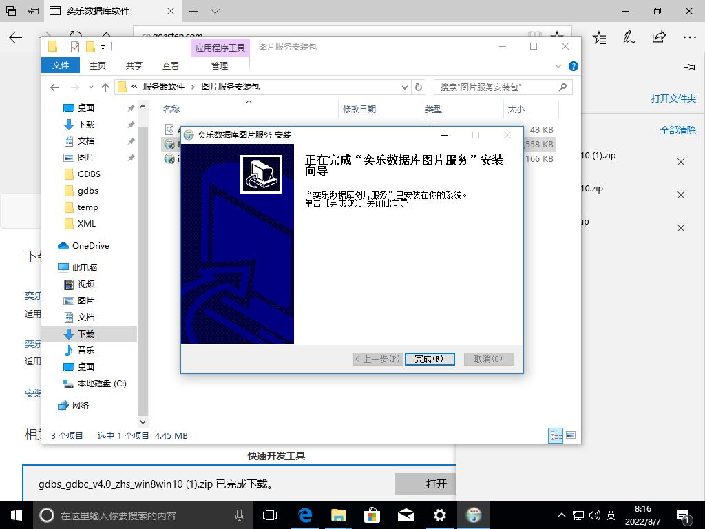 ![]() 直到“奕乐数据库图片服务”安装完成。 |