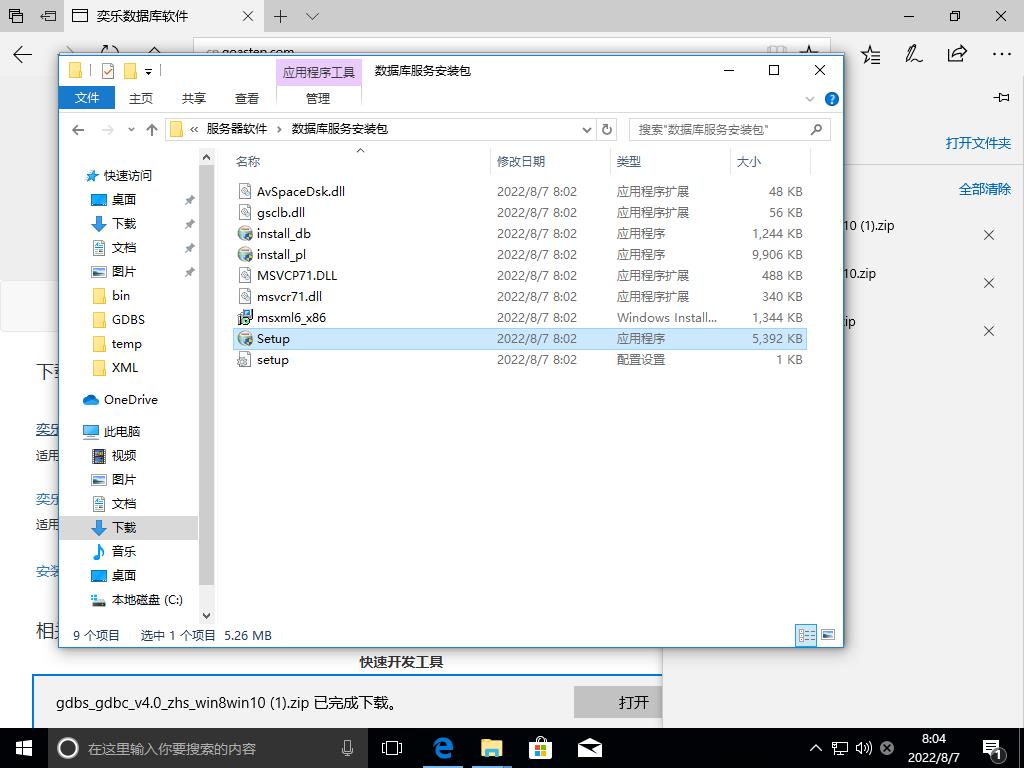 ![]() 打开“数据库服务安装包”文件夹, 双击其中的“Setup.exe”,先安装数据库服务软件。 |