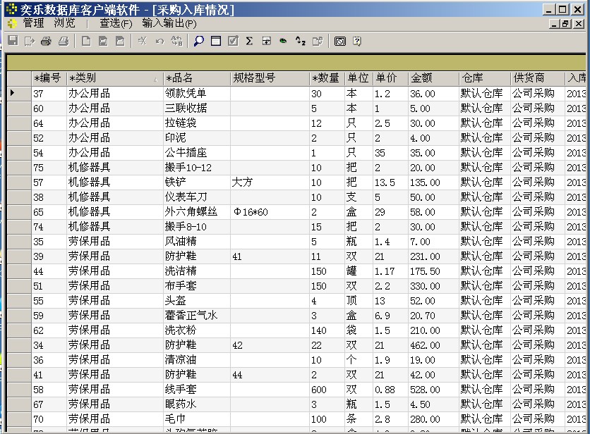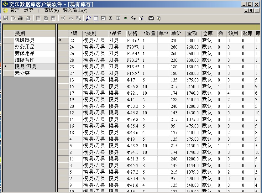 “工具及用品管理系统”包含在奕乐数据库软件的示范数据库中。安装奕乐数据库软件时自带几个数据库,用来展示数据库系统的功能,因此叫示范数据库。